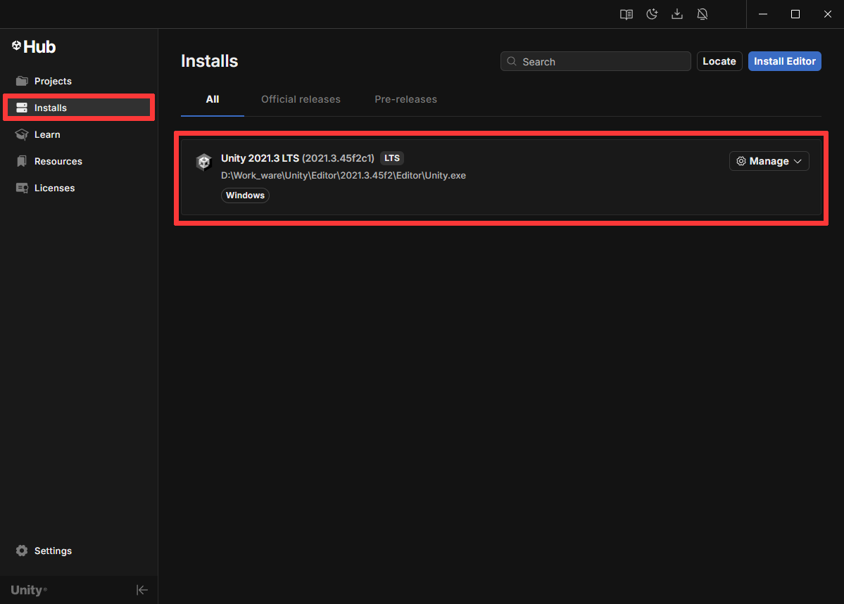 Pero si realmente quieres instalar esa versión, recomendamos fuertemente que cambies la ruta de instalación a ...\<versión> (por ejemplo, D:\Softwares\Unity\2021.3.18f1),